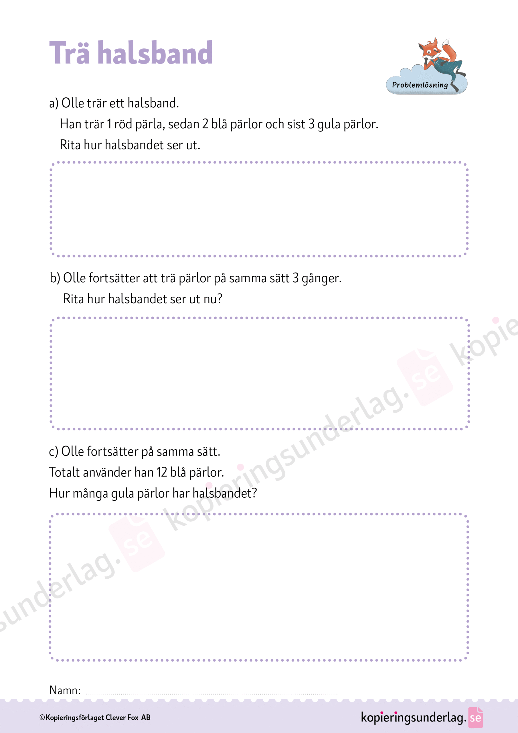 Produkten innehåller 5 kopieringsunderlag för åk 4–6 med blandad problemlösning: – Hur många av varje sort? – Kombinationer – Ledtrådar – Proportioner – Räcker pengarna?