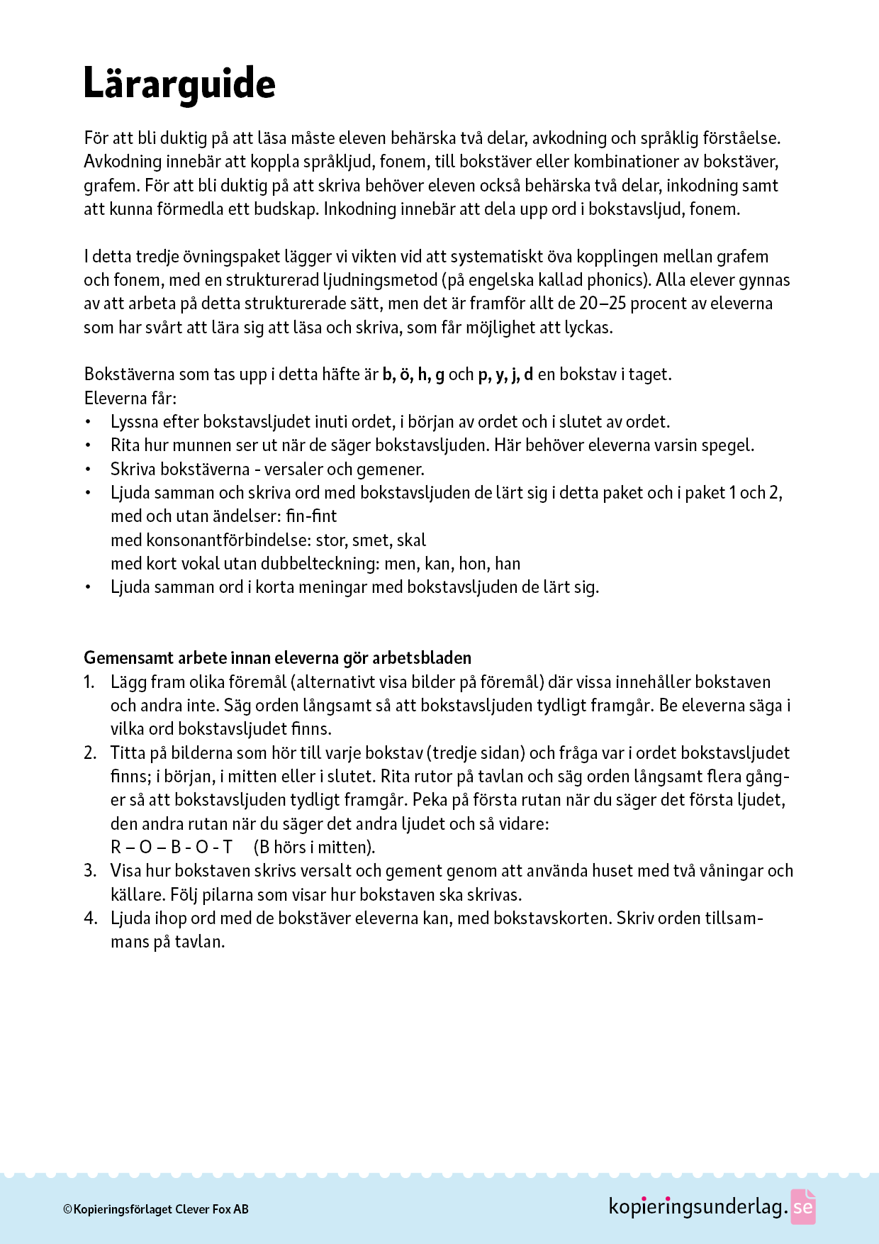 I detta andra övningspaket lägger vi fortsatt vikten vid att systematiskt öva kopplingen mellan grafem och fonem, med en strukturerad ljudningsmetod (på engelska kallad phonics).…