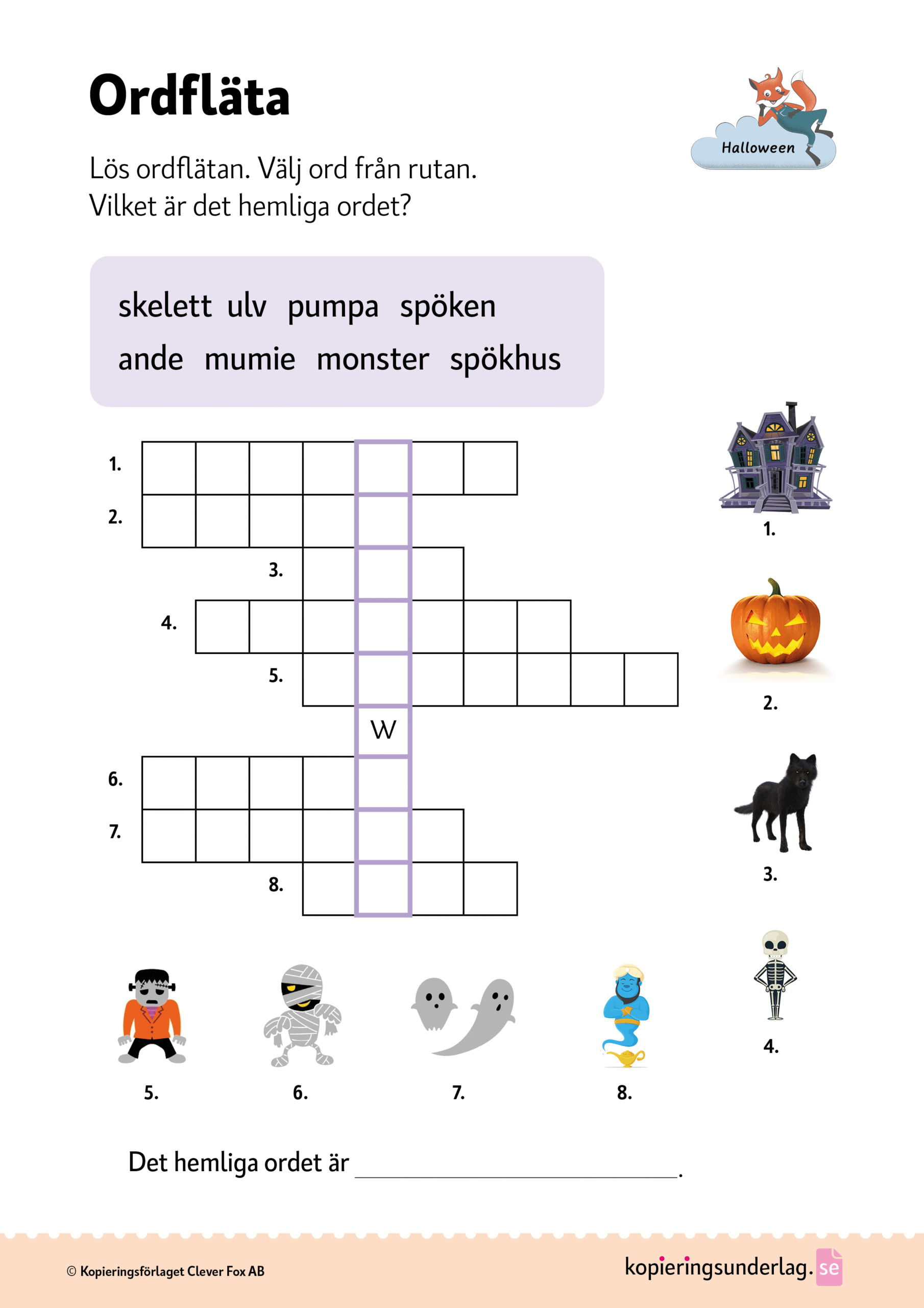 Ordflätan passar för årskurs 1-3 vid Halloween.